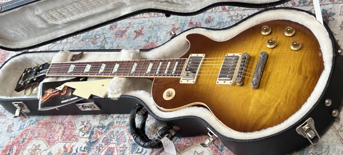- Includes the black Gibson deluxe LP case – all catches okay inc the 3 digit security code numbers/latch – manual + scratchplate are included within the case