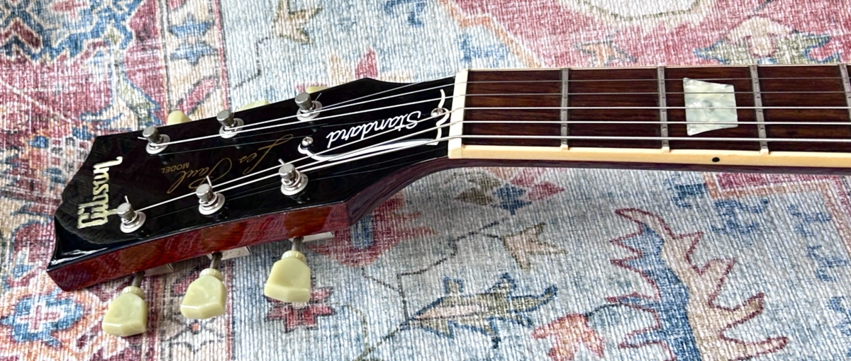 Overview Comments :- Before I introduce you to this used 2004 Gibson Les Paul Standard, with a classic sunburst finish, can I give you a brief history lesson ? – It is fair to say that the 70’s, 80’s and 90’s, did not reflect Gibson’s finest period of history – Don’t get me wrong, in that all Gibson Guitars from this era are considered poor, as that is not the case – Yet a serious lack of attention to detail, various change to mass production methods, a curious supply of ingredients, along with a corporate management structure, that was influenced by a bean counter style of accountancy, ensured a steady supply of mediocre models – Granted you can find some good guitars from this period, but you can also find many that are way below par – Yet original vintage models, as well as today’s Custom Shop vintage replicas, come with a price tag that is considered unaffordable by many – So was it possible to build a superior production Les Paul Standard ? – In 2002, the Gibson management team finally woke up and smelt the coffee – Following various price adjustments, changes to the spec sheet, plus a superior build quality/attention to detail, a new breed of LP Standard was born – To put it simply, Gibson Les Paul Standard’s built in 2002, until around 2008, represents a small era of significant improvement – Sadly since 2008, we’ve seen an almost annual change to the product line, with some models and features more desirable than others – But for many players, the period from 2002 to 2008 represents good news as far as the LP Standard goes – Superior ingredients – Improved build quality – Improved playing performance – Enhanced aesthetic appeal that reminds us of LP’s from the late 50’s golden era – Without getting into the more expensive vintage replicas, it is generally agreed that Les Paul Standard’s from 2002 to 2008 represent something ‘more desirable