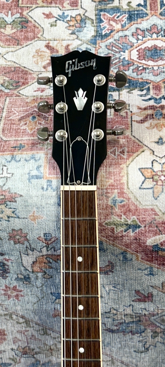 Let’s go back to the early 80’s, when Tokai introduced their excellent range of Jap built replicas, including a fine 335 Dot Reissue with a stop tail – Needing to responded very quickly, Gibson dropped the trapeze tailpiece format, that had been around for 20 years or so, and returned to their own golden era, to bring back appropriate vintage flavoured appointments, so from that moment onwards they have not looked back – As this is a model from in Memphis Tennessee, dating back to 2004, it is spec’d with a pair of PAF replica Classic 57 humbuckers to enhance the guitars tone – The vintage vibe is instantly apparent, so no shortage of that smooth, rich and warm character, coupled with good articulation – These are the tonal characteristics that ensure the 335 is such a versatile instrument – Not many guitars cover so many playing styles from chilled out jazz and blues through to jazz/fusion, rock/blues, classic rock or indeed Brit Pop/Indie – The 335 has spent longer in the Gibson product range then any other electric and that is a testimony to its versatility, that has seen it cover every form of popular based music for well over 60 years