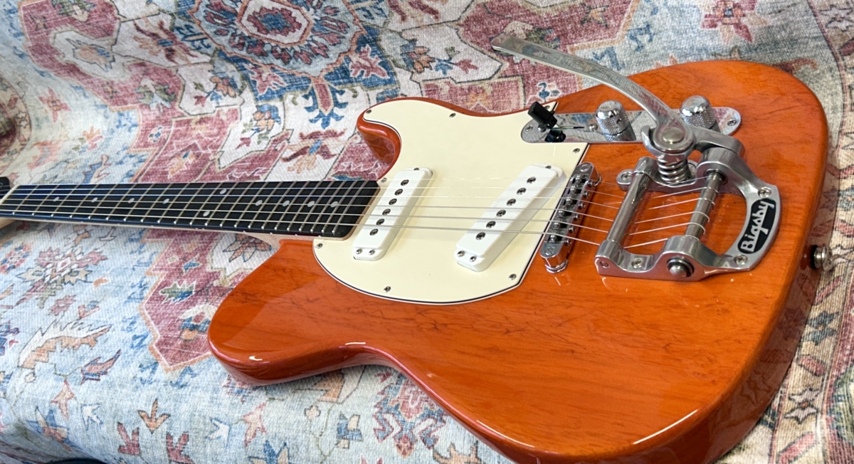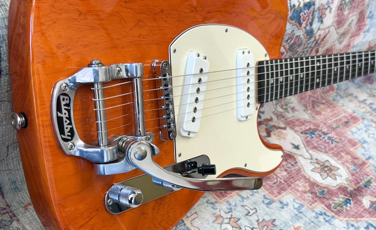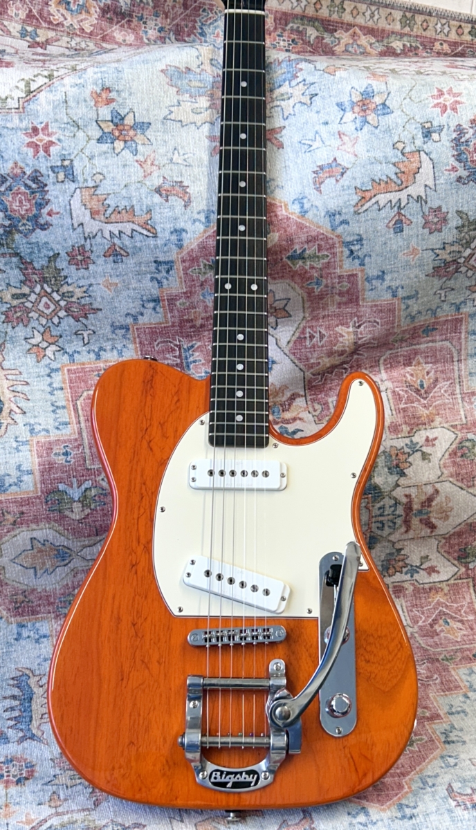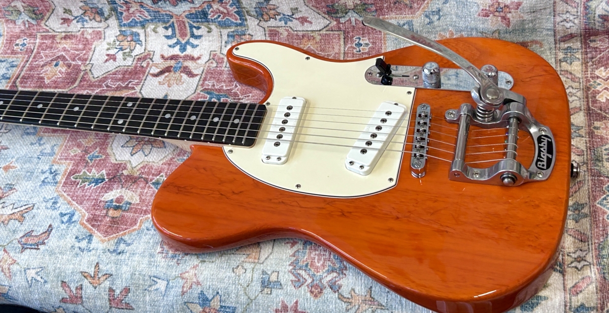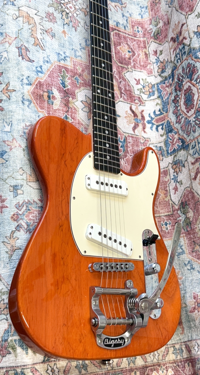 Overview :- Somewhat ironic that Leo Fender found so many faults with the original early 50’s black guard Tele – As a designer/engineer, he would spend hours trying to fine tune many aspects of such guitars in order to enhance the guitars performance capabilities – So no this USA G&L ASAT Special with a Bigsby, is not a traditional pre-CBS copy – But it certainly takes on many aspects of a hot rod Tele – Whilst the Bigsby and translucent orange finish give it some of that Gretsch appeal , which is further enhanced with a pair of G&L MFD single coil pick-ups, that capture strong hints of a P90 and Gretsch Dynasonic – So read on, to gather additional info with regards to this used USA model from 2019