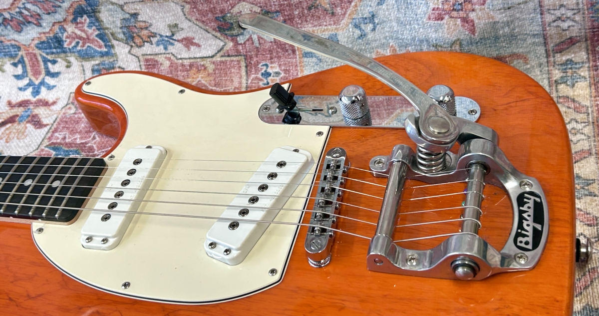 - Bigsby B5 vibrato with ‘tune o matic’ style bridge with ‘roller’ saddles